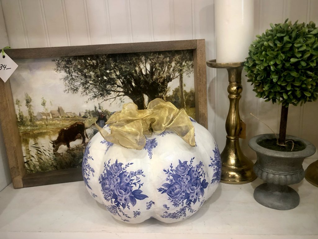 Come and make this timeless classically styled pumpkin in blue and white chinoiserie inspired patterns. Using Chalk Paint and Decoupage you will create a beautiful Chinoiserie Inspired Pumpkin that could easily be mistaken for Porcelain. A fun way to practice decoupage too.